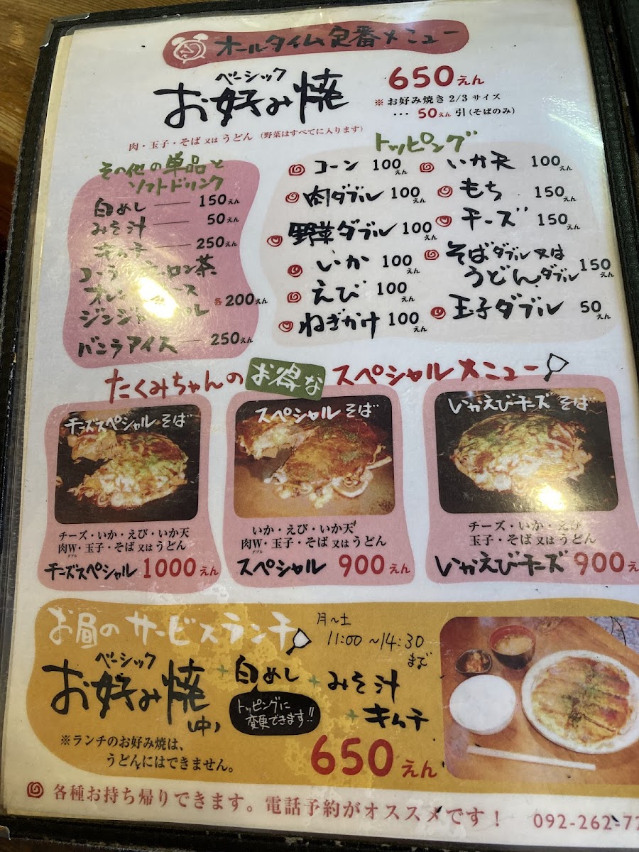 What stands out at Takumichan is not just the food, but the warm and welcoming atmosphere fostered by the friendly staff. The restaurant offers an English menu, making it accessible for all visitors, ensuring everyone feels at home. Many patrons rave about the special okonomiyaki and generous side dishes like stir-fried udon and crunchy bean sprouts, creating a harmony of flavors. Be sure to try the intriguing scallop cheese appetizer for an unforgettable start to your meal.